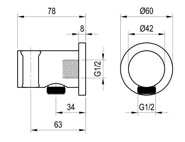 Fali zuhanycsatlakozó, Ravak 706.21BLM Fali kiállás integrált zuhanyrózsa tartóval, Black Matt X0