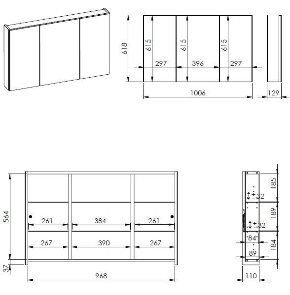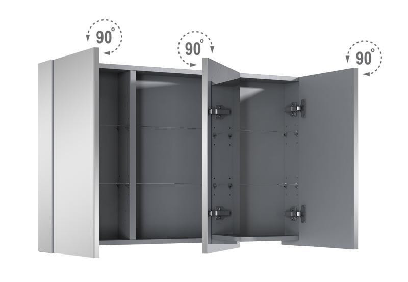 Kiváló minődségben készült, modern, sokoldalú fali szekrény tükrös ajtóval, tükrös oldalakkal, softclose záródással és állítható magasságú üvegpolcokkal felszerelve.