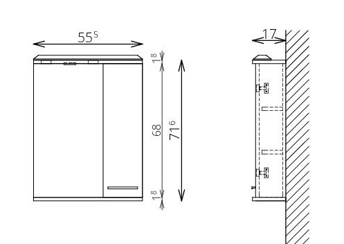 Méret: 55x100x17 cm