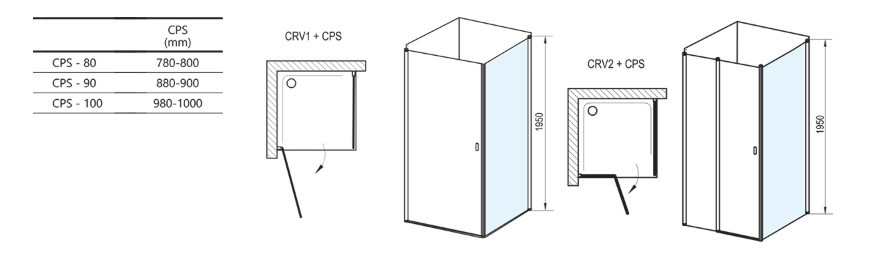 Szerelési méretek: 980-1000x1950 mm