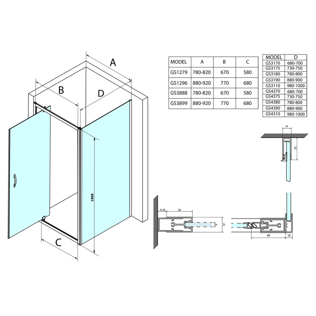 Fix fal, Sapho Gelco SIGMA SIMPLY oldalfal, 75 cm GS3175