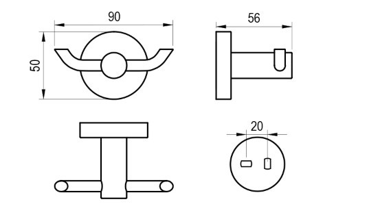 A dupla törölközőakasztó két tipli és egy beállító fém rögzítőlemez segítségével kerül felszerelésre.