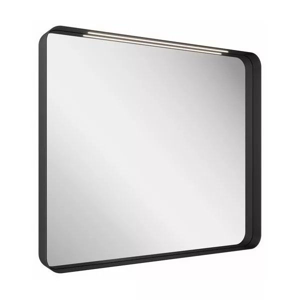 A keskeny alumíniumkerettel rendelkező, fekete színű fali tükröt a minimalizmus és a praktikum jellemzi.