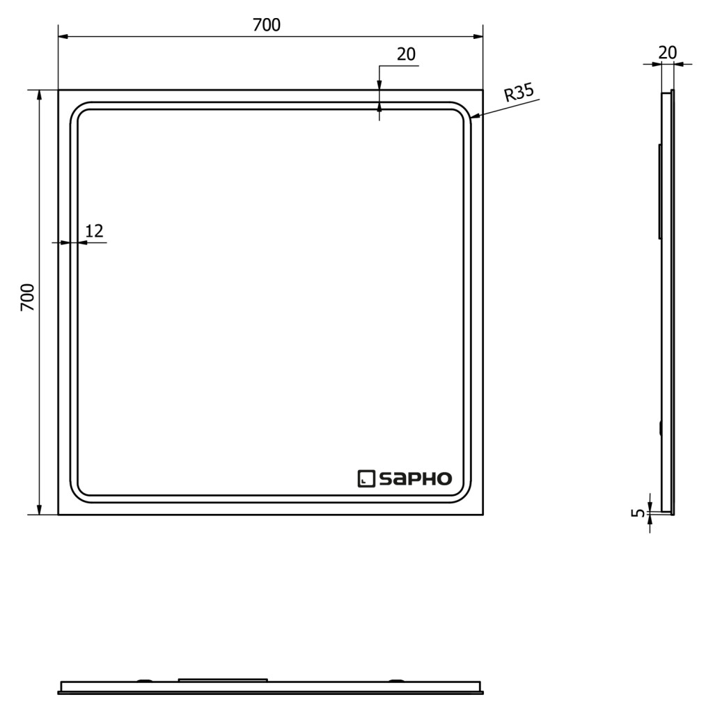 Fürdőszoba tükör, Sapho GEMINI 70x70 GM070