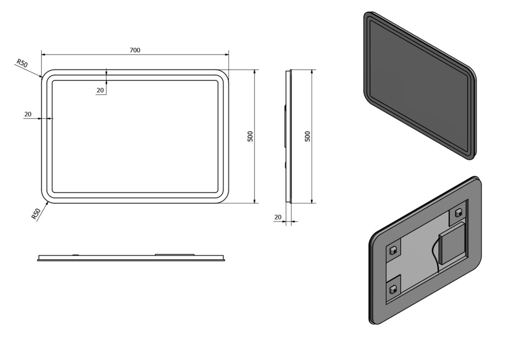 Fürdőszoba tükör, Sapho NYX 50x70 NY050
