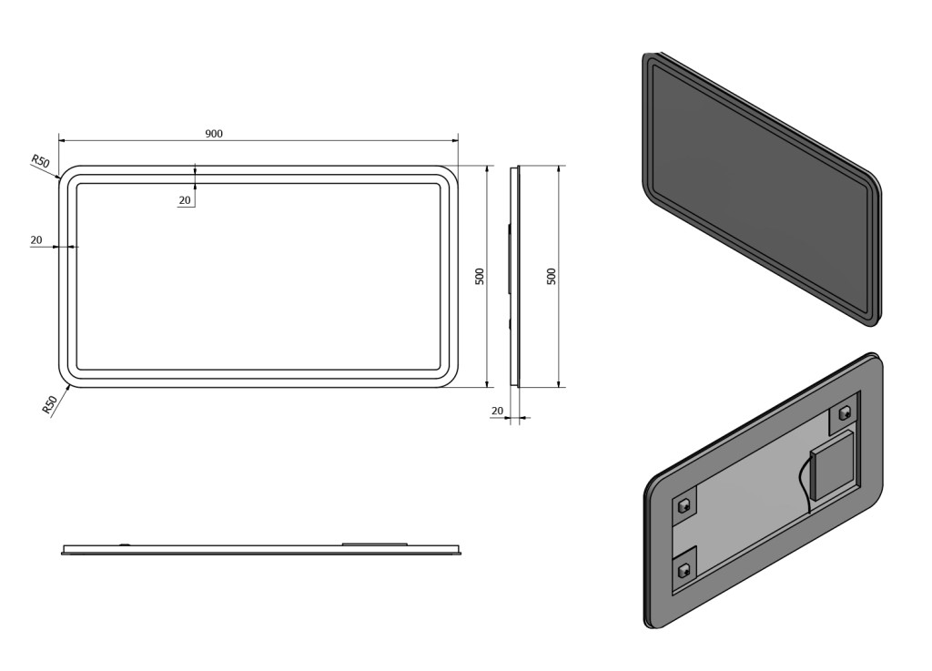 Fürdőszoba tükör, Sapho NYX 90x50 NY090