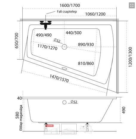 A lábak talajjal érintkező végén PVC talpak találhatók. A kádtest 8 (egyenes kád) illetve 7 (Sarokkád) ponton van alátámasztva, ezáltal utólagosan semmilyen alátámasztást nem igényel.