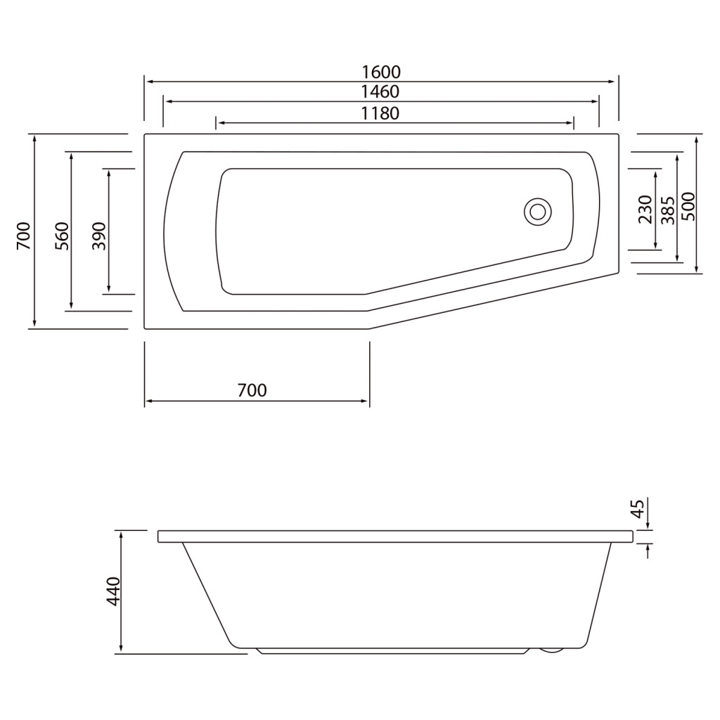 Kád, Aqualine Opava 160x70 aszimmetrikus balos C1670