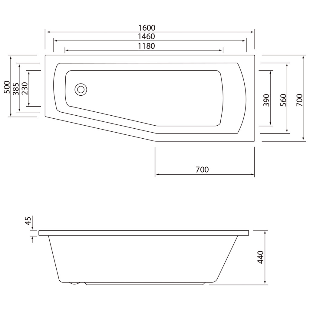 Kád, Aqualine Opava 160x70 aszimmetrikus jobbos A1671