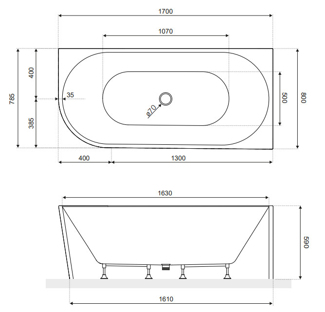 Kád mérete: