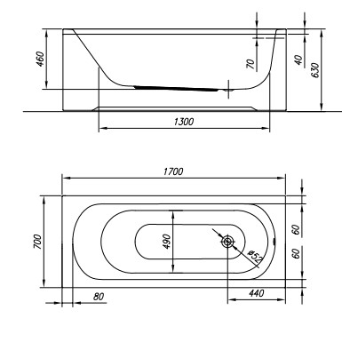 Kád, Kolpa San 565380 Betty 170x70 beépíthető fürdőkád test