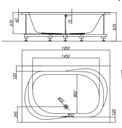 Kád, Kolpa San 593200 Adam&Eva 195×125 beépíthető fürdőkád
