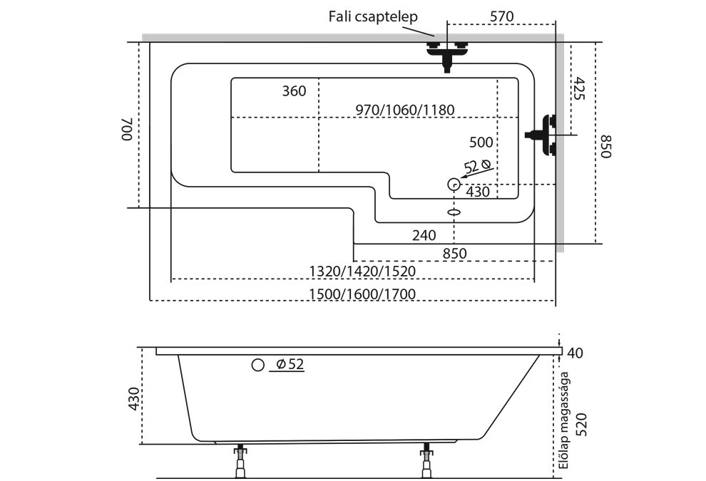 Kád, M-acryl LINEA KÁD 160X70/85 Balos+láb