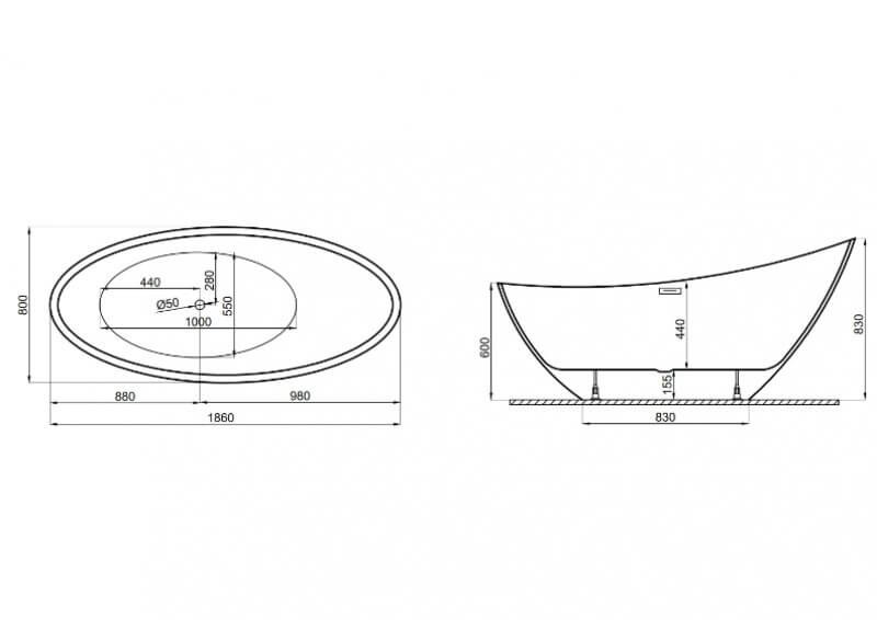 Kád, M-Acryl Paradise szabadonálló kád 180x80 cm fényes fekete