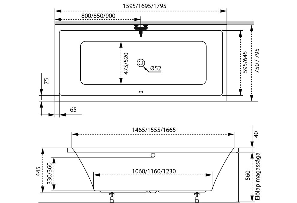Előlapot, le-és túlfolyót és az oldallapot az ár nem tartalmazza, külön rendelhető!