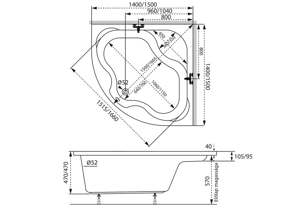 Előlapot, le-és túlfolyót és az oldallapot az ár nem tartalmazza, külön rendelhető!
