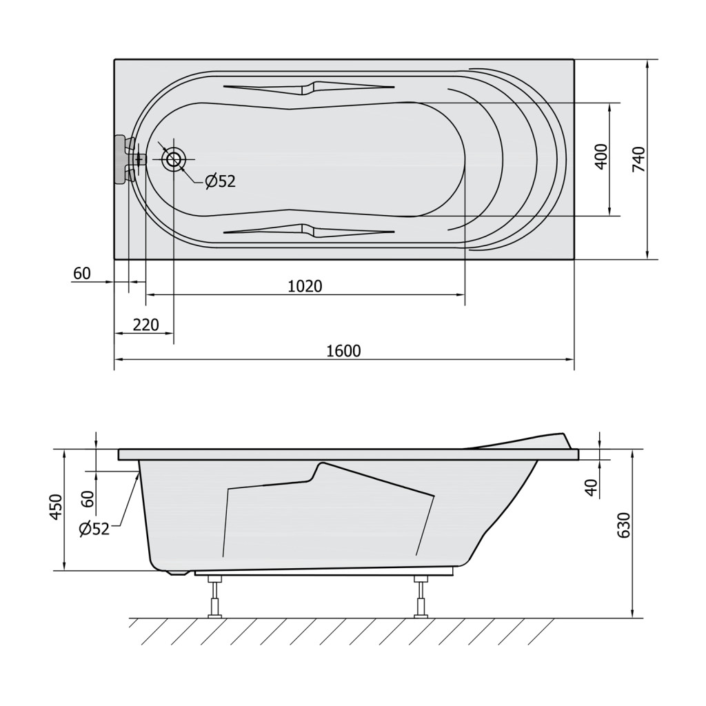 Kád, POLYSAN ADRIANA kád 160x74x45 : 43111 Sapho