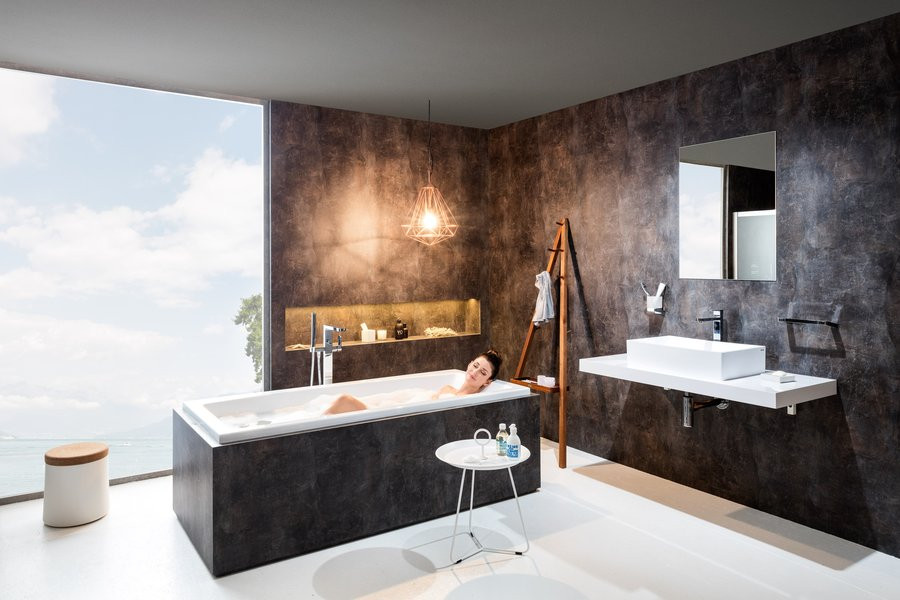 Egyedi megjelenés : a koncepció mosdójához szerelhető ult színválasztékávaé valamint a kád térben való elkhelyezésével padlón álló csapteleppel, egyedivé teheti a fürdőszobáját.