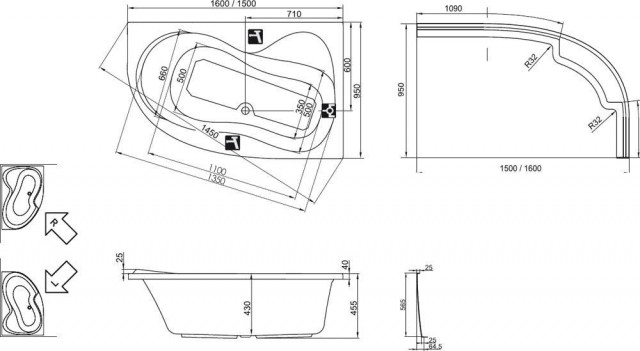 Kád formája: aszimmetrikus kád