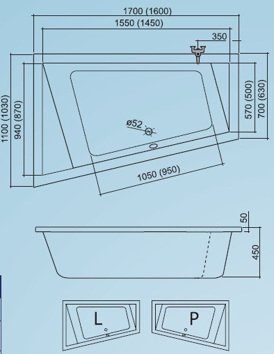 Kád, Roltechnik Kubic Asymmetric 170 (L)