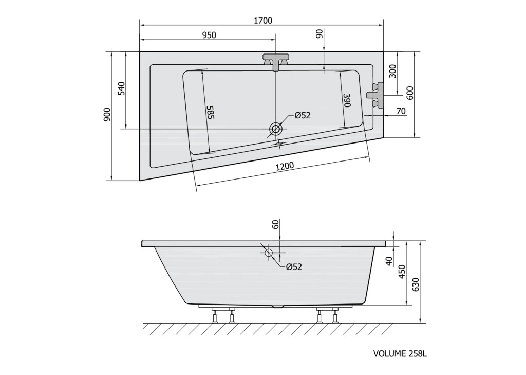 Kád formája: aszimmetrikus kád