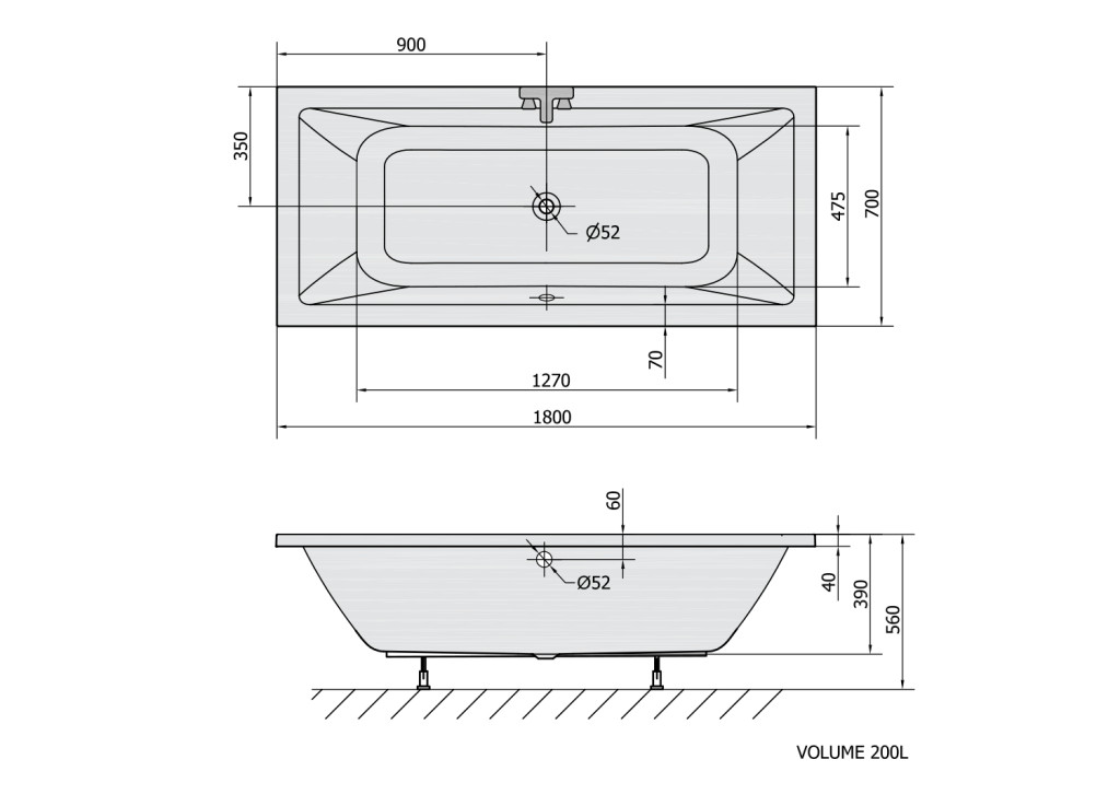 180x70x39 cm. Fehér színű akril egyenes kád. Az ár a kádlábat nem tartalmazza.