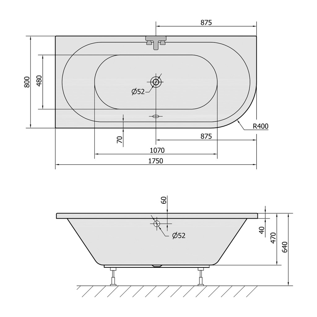 Kád, Sapho POLYSAN VIVA 70119.21 aszimmetrikus kád, balos, 175x80x47cm, matt fekete