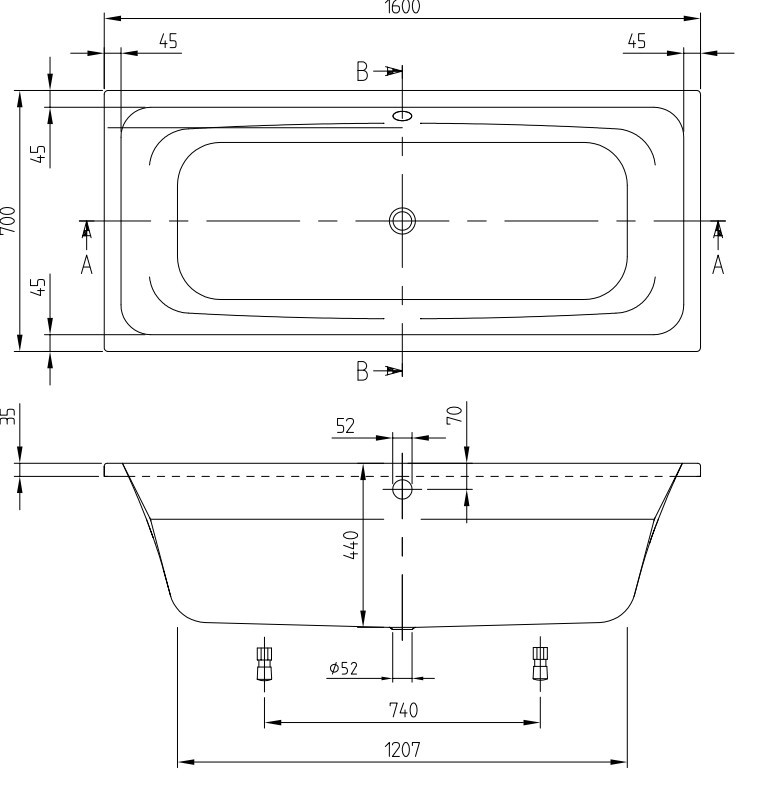 Kád, Villeroy&Boch Avento kád 160x70 cm UBA167AVN2V-01