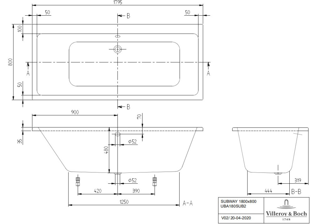 Kád, Villeroy&Boch Subway kád 180x80 cm UBA180SUB2V-01