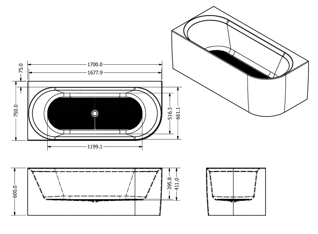 Kád, West Rapsody kád, balos 170x75 cm