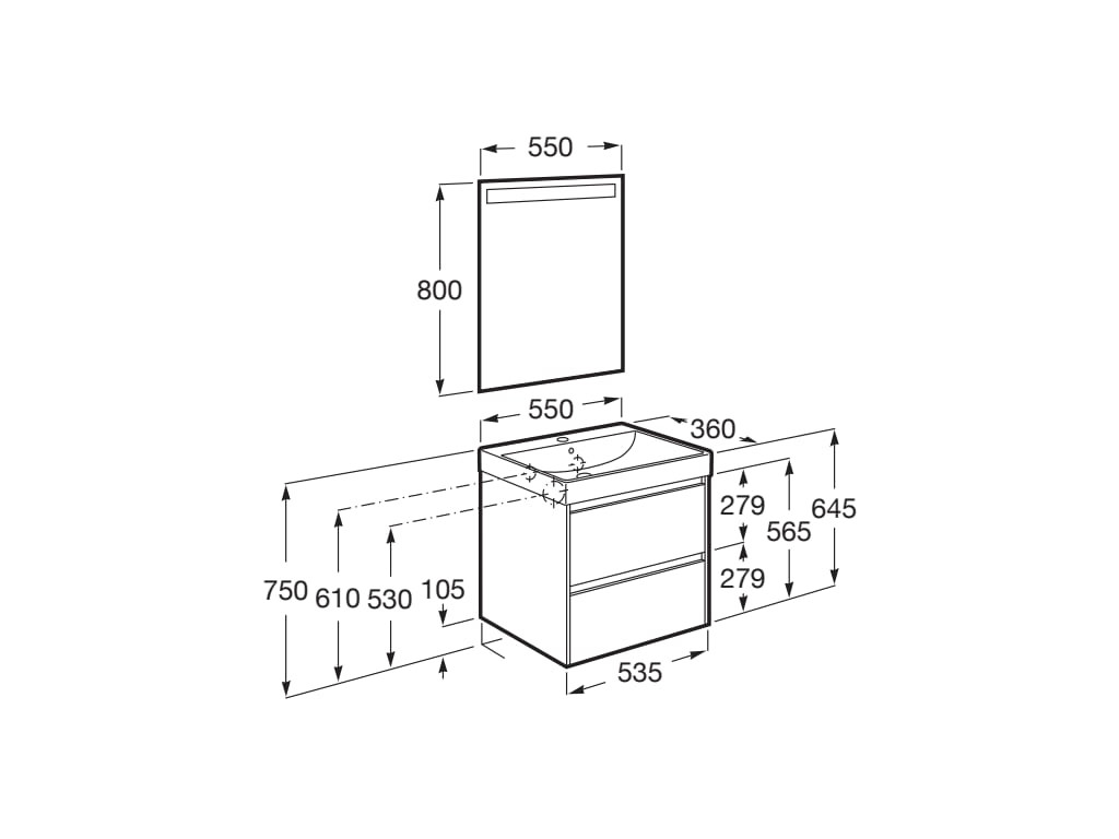 Komplett bútor, Roca Ona A851699509 kompakt mosdószekrény Pack mosdóval, tükörrel, matt fehér