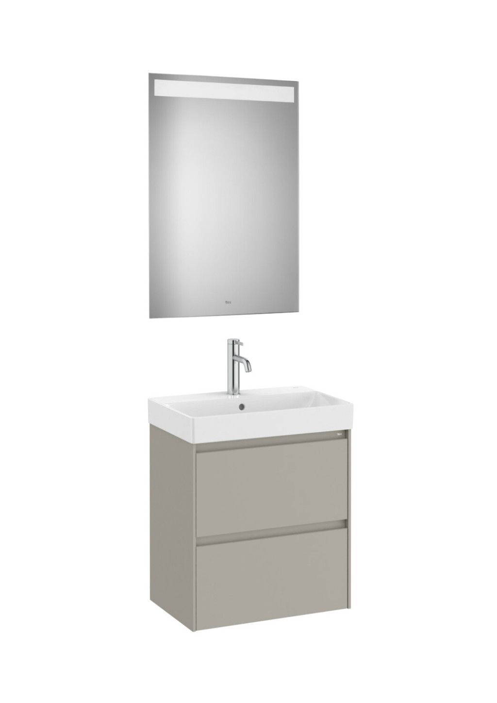 Komplett bútor, Roca Ona A851699510 kompakt mosdószekrény Pack mosdóval, tükörrel, matt szürke