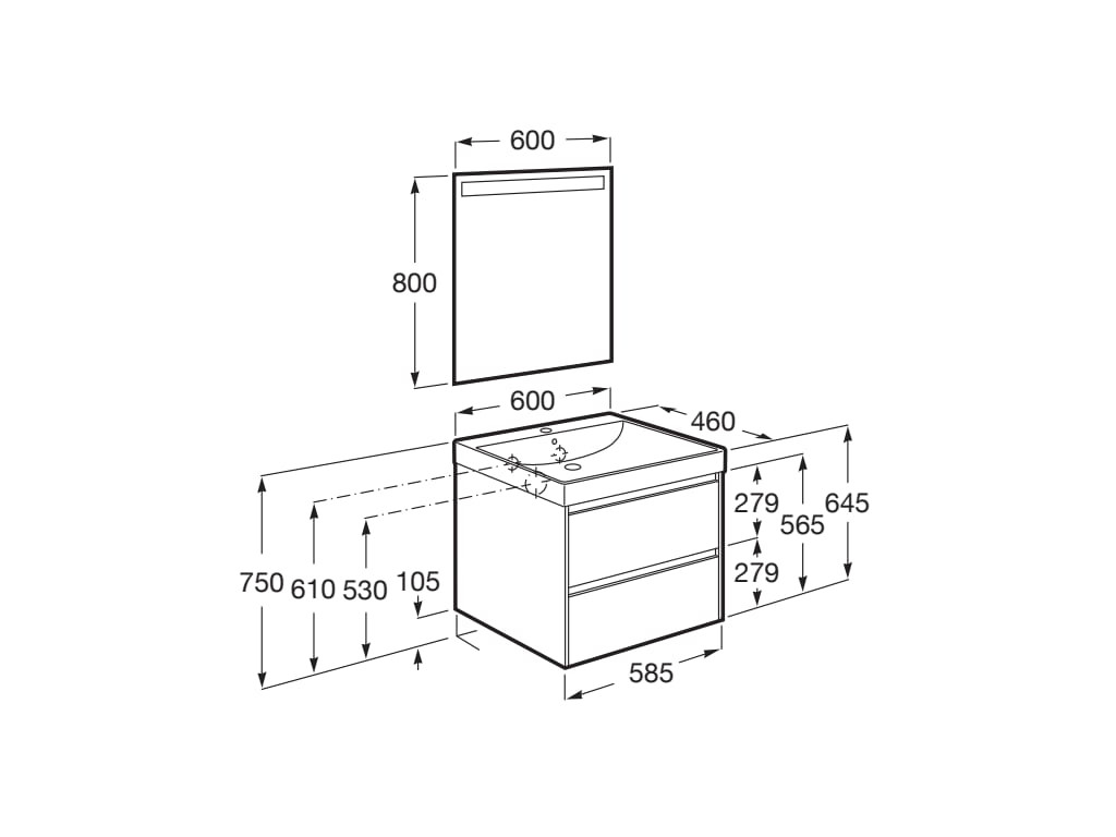 Komplett bútor, Roca Ona A851704512 mosdószekrény Pack mosdóval, tükörrel, világos tölgy