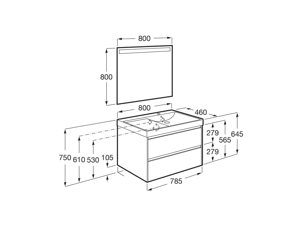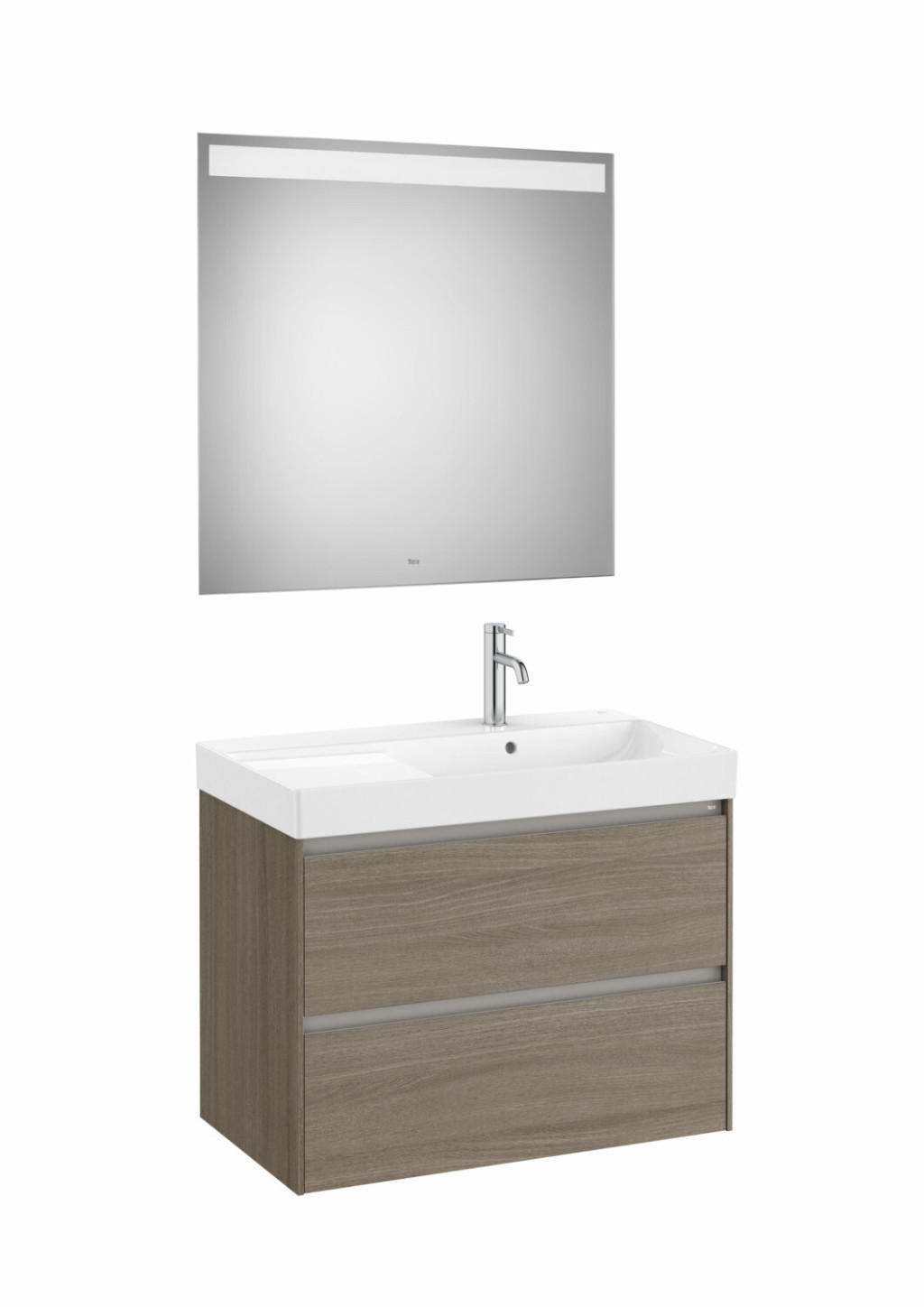 Komplett bútor, Roca Ona A851706511 mosdószekrény Pack jobbos mosdóval, tükörrel, sötét szilfa
