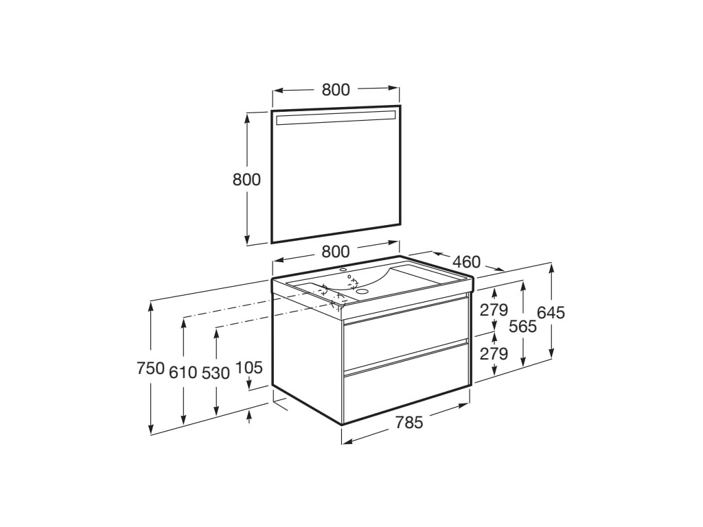 Komplett bútor, Roca Ona A851707509 Unik mosdó+mosdószekrény, tükörrel, matt fehér