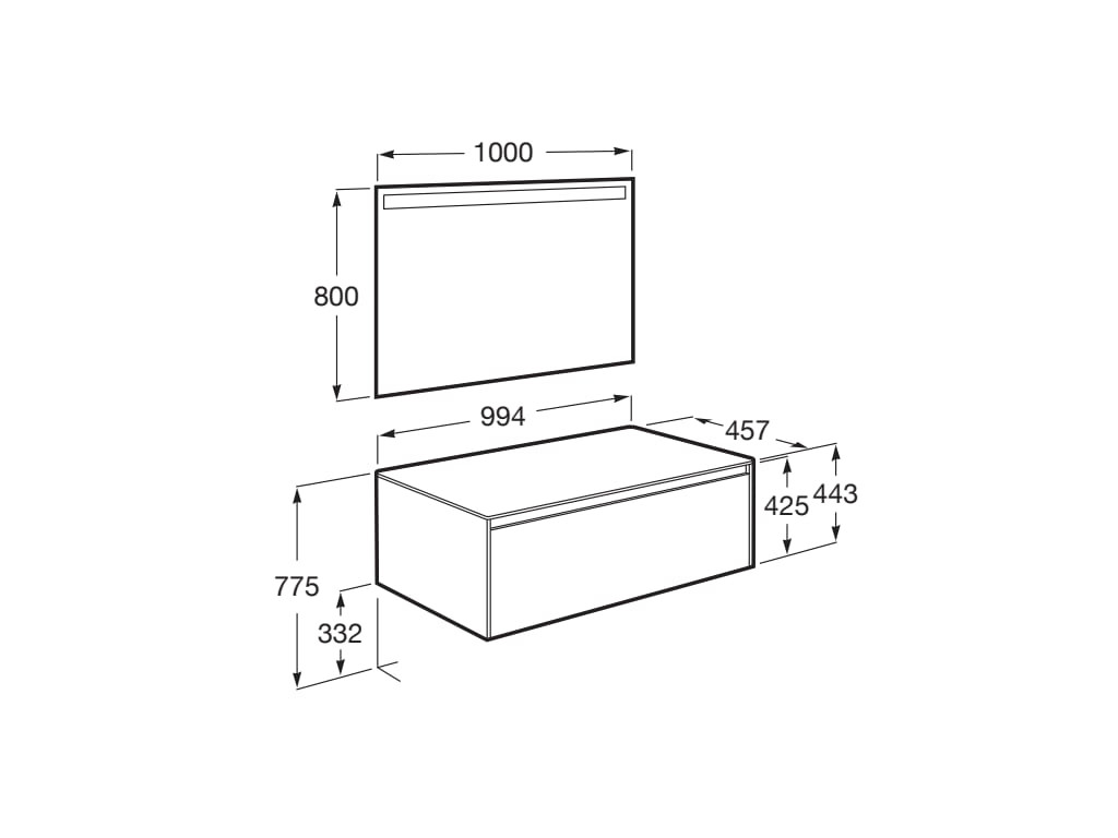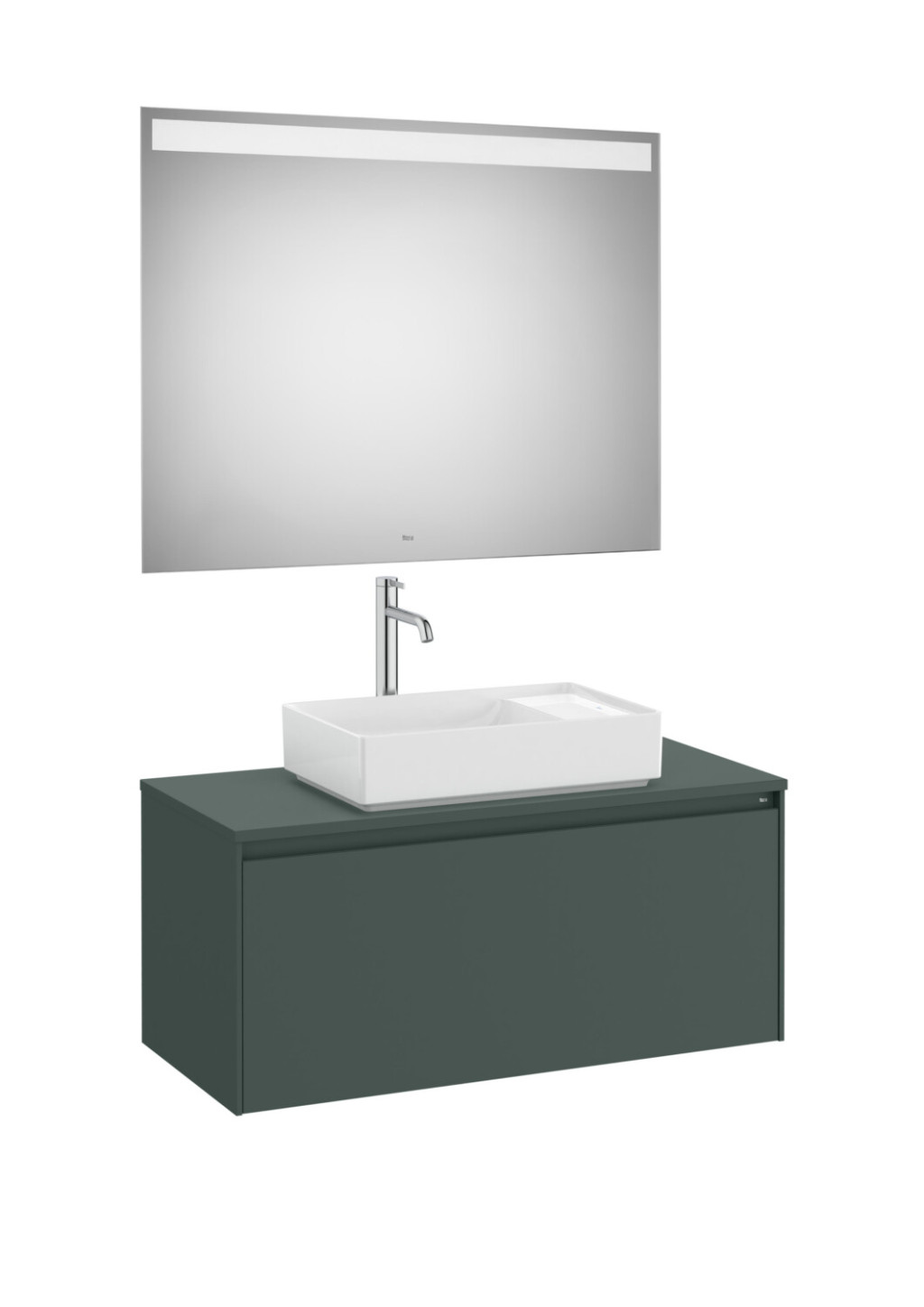 Komplett bútor, Roca Ona A851714513 mosdószekrény Pack ráültethető mosdóhoz, tükörrel, matt zöld