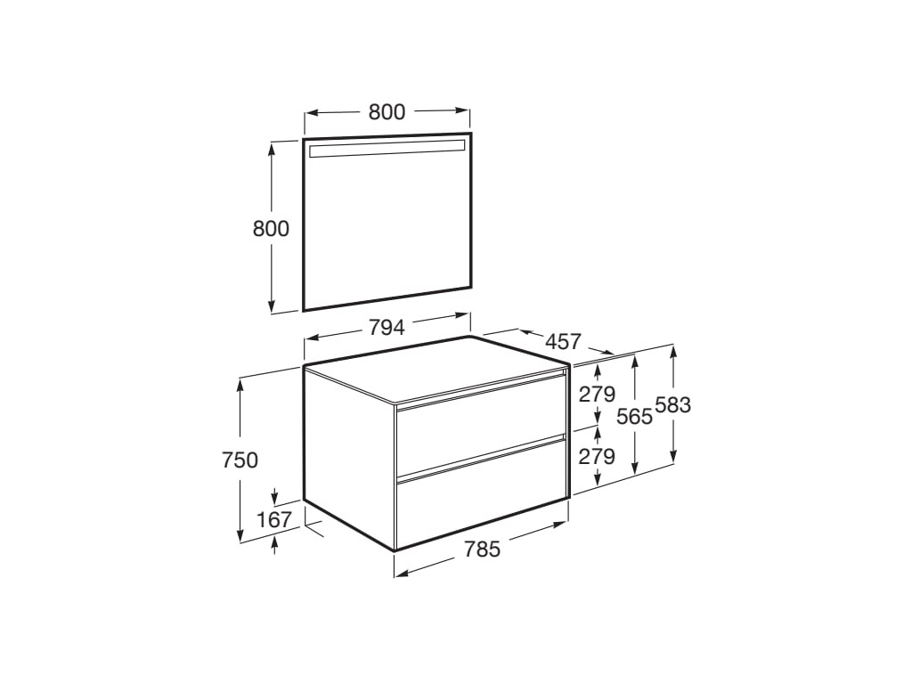 Komplett bútor, Roca Ona A851715512 mosdószekrény Pack tükörrel, jobboldali ráültethető mosdóhoz,