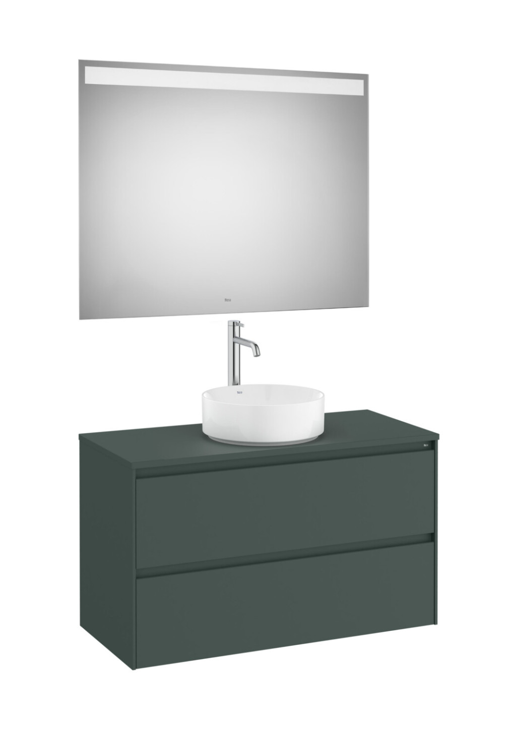 Komplett bútor, Roca Ona A851718513 mosdószekrény Pack ráültethető mosdóhoz, tükörrel, matt zöld