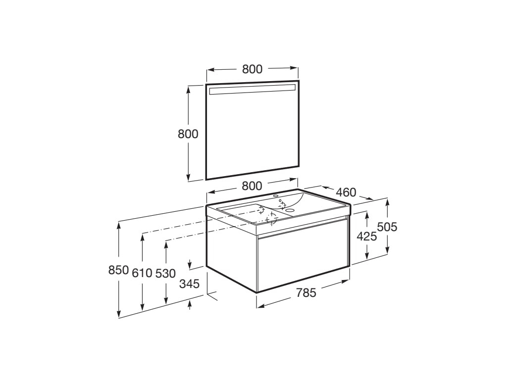 Komplett bútor, Roca Ona A851721510 mosdószekrény Pack jobbos mosdóval, tükörrel, matt szürke