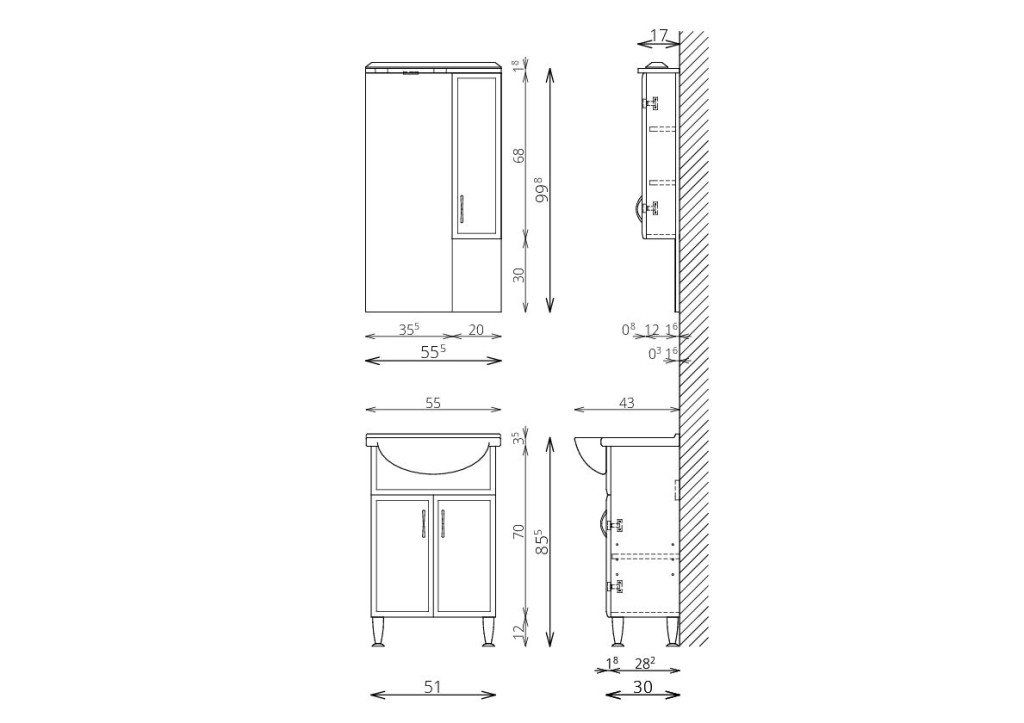 A termék ára az alsószekrényt, a mosdótálat és a felsőszekrényt tartalmazza.
