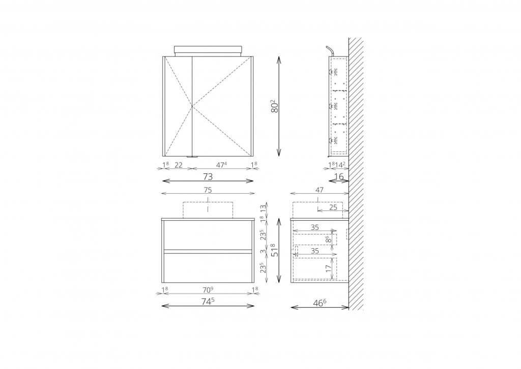 Felső szekrény: Mirror Box Cut 75