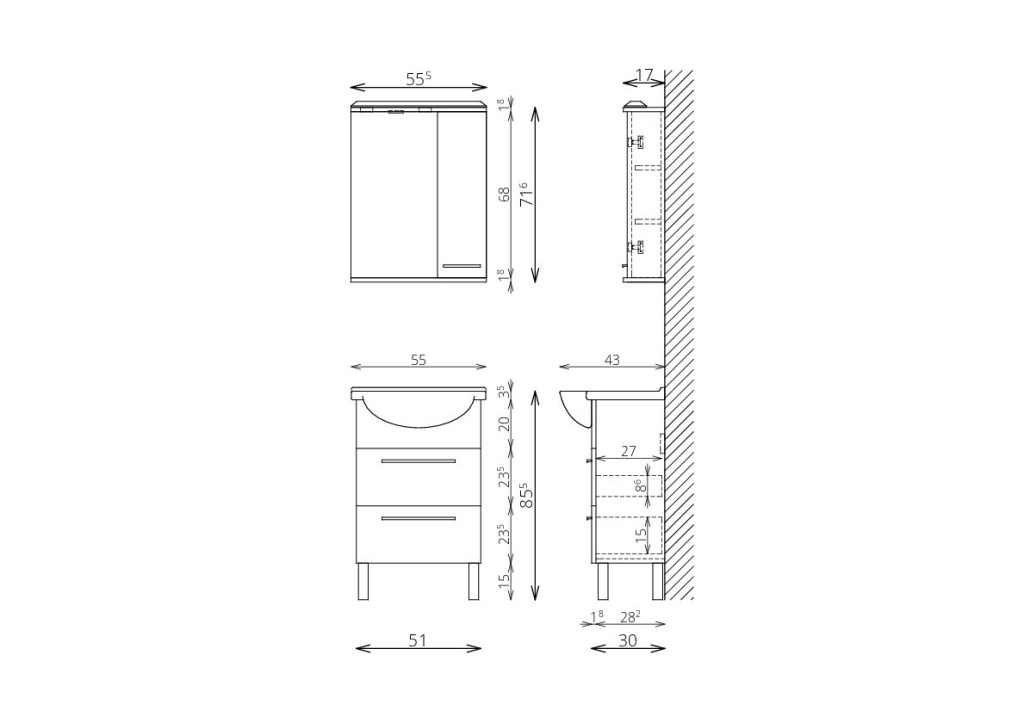 A termék ára az alsószekrényt, a mosdótálat és a tükrös felsőszekrényt tartalmazza.