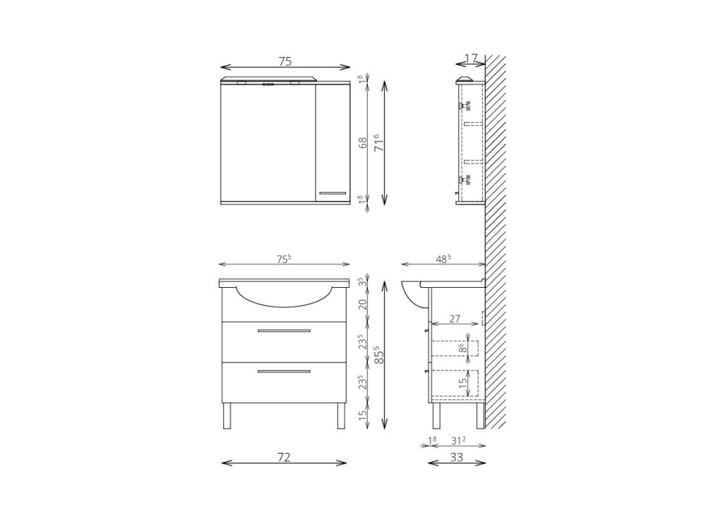 A termék ára az alsószekrényt, a mosdótálat és a tükrös felsőszekrényt tartalmazza.