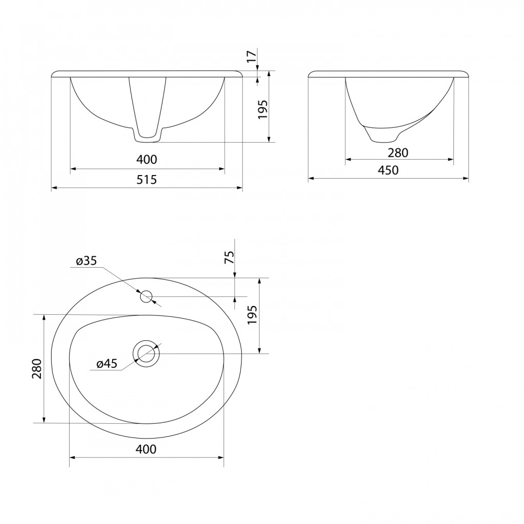 Mosdó, Aqualine pultba süllyeszthető kerámiamosdó, 52x45cm 55227