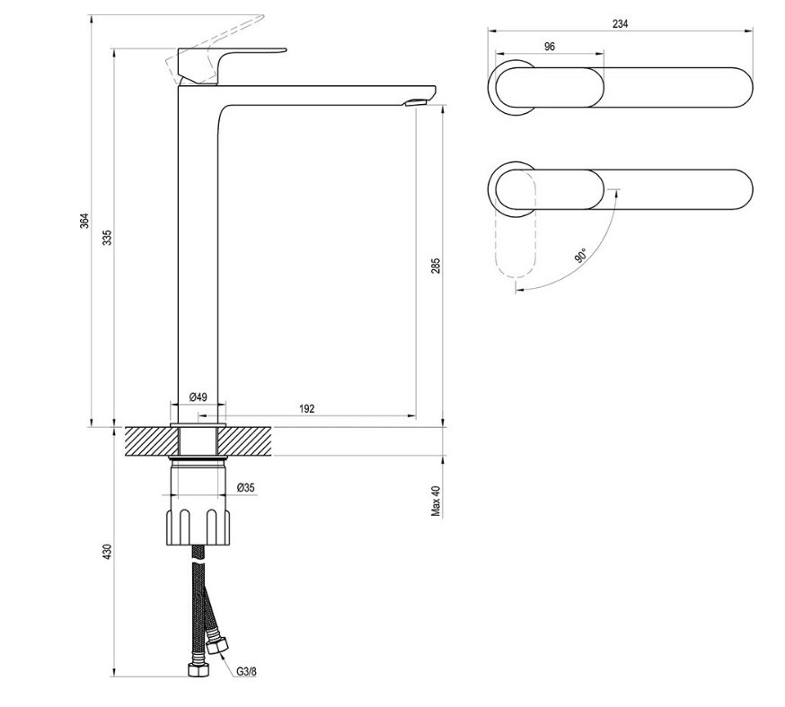A középső állásban a víz nem keveredik feleslegesen, mint a hagyományos mosdócsapoknál, hanem a meleg víz csak a kar balra fordításával indul el.