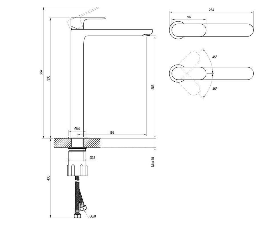 a csaptelep magassága: 335 mm