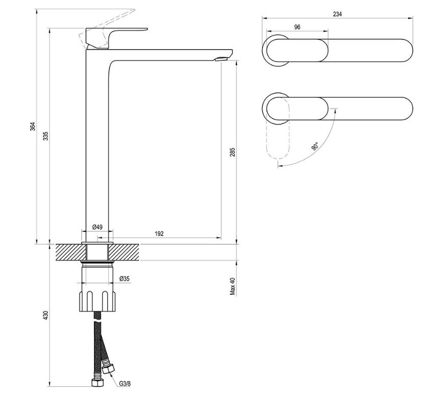 Mosdó csaptelep, Ravak Eleganta EL 015.21GB Álló mosdó csaptelep BeCool 335 mm, leeresztő nélkül,