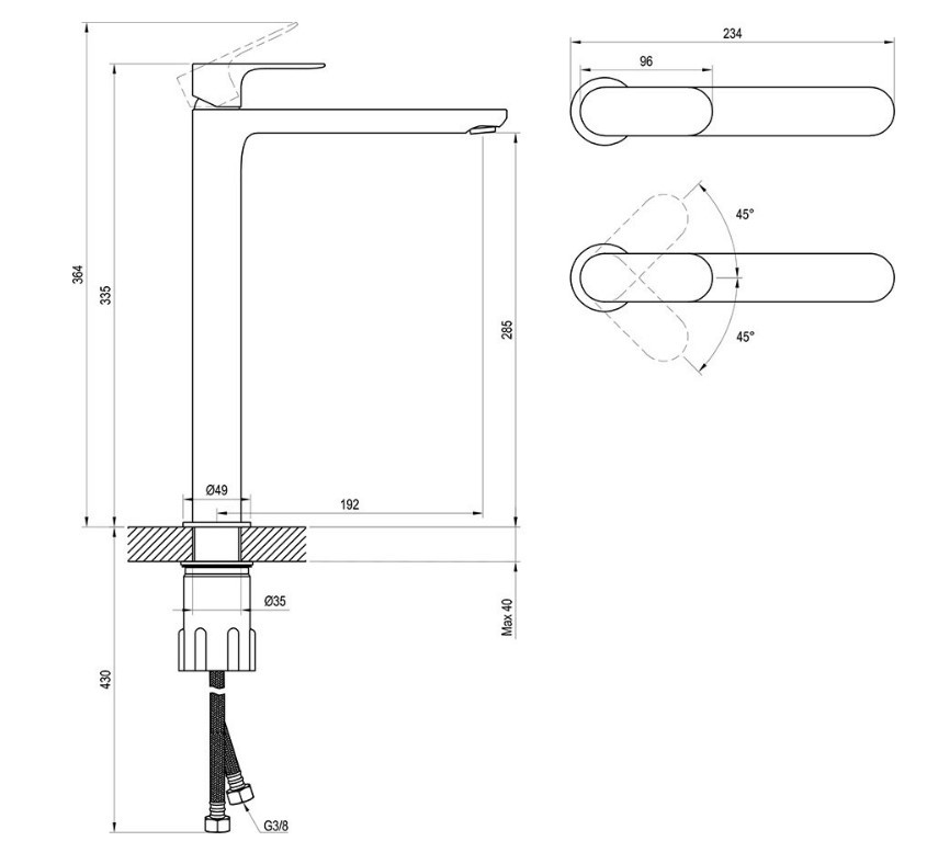 a csaptelep magassága: 335 mm