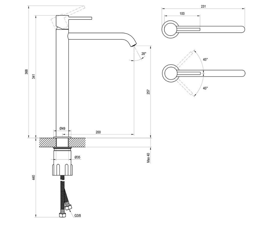 Mosdó csaptelep, Ravak Espirit ES 015.00CR Álló mosdó csaptelep 340 mm, leeresztő nélkül X070194