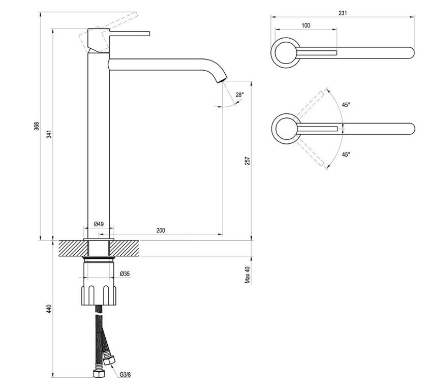 csatlakozótömlők: hajlékony 700 mm, átmérő: DN6, G3/8